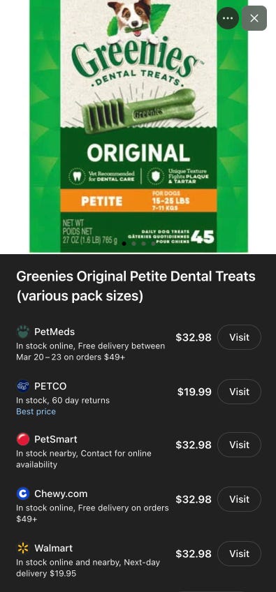→ Perplexity/PayPal - As best we can tell, the underlying catalog here is from the Honey browser extension. In certain categories it’s decent and in others it needs some work. Since the big changes at PayPal, it’s retailers are finding it hard to get information about the program from PayPal/Perplexity.