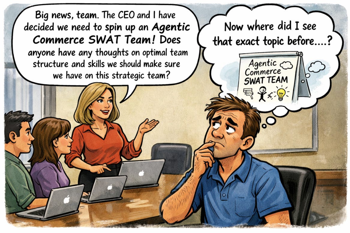 There are three ideas we have for helping you frame the business case for creating a team and investing Agentic Commerce Optimization.
