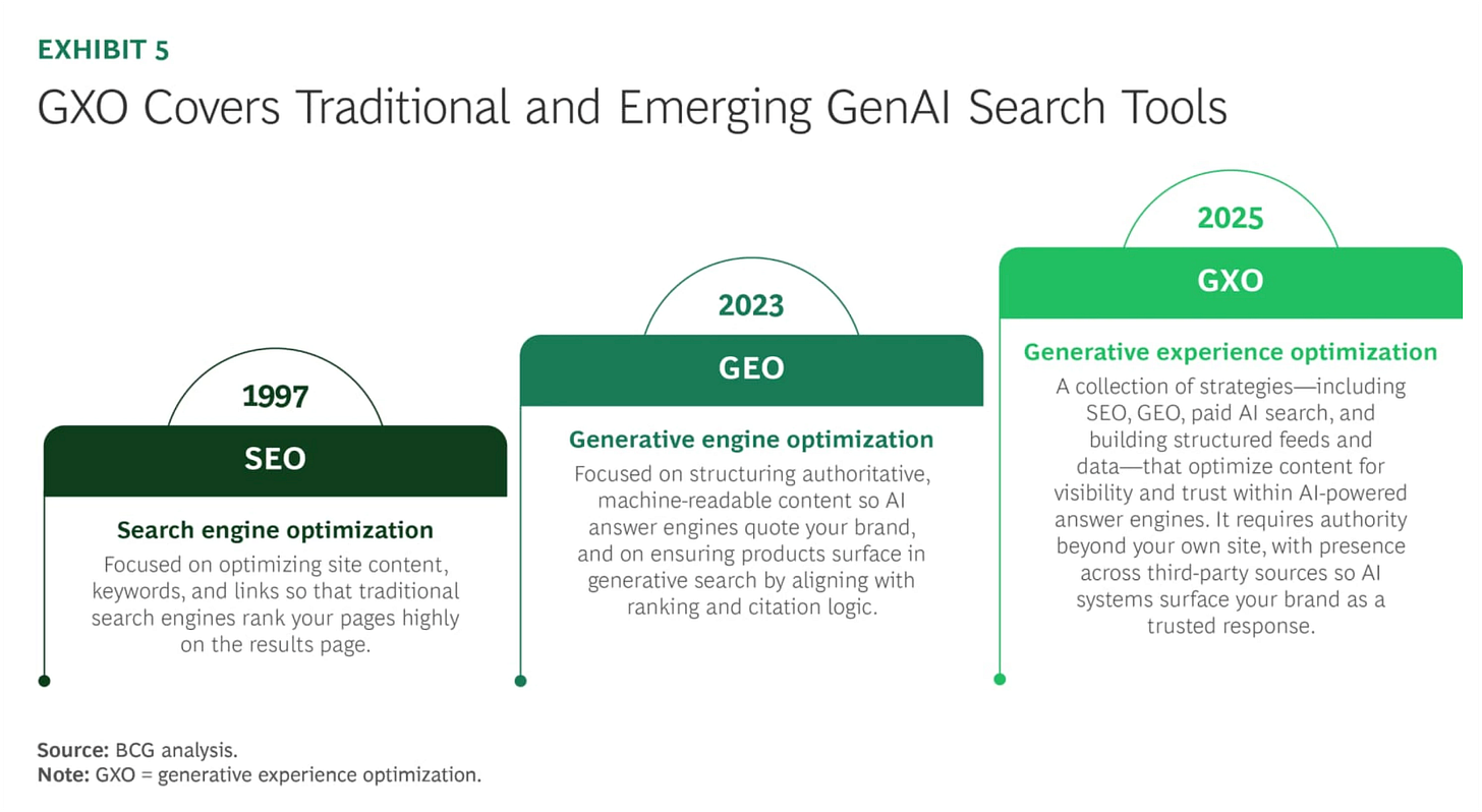Finally not to be outdone in the battle between the folks that are fighting for GEO vs. AEO, they take the high road and throw a third option in the mix: GXO - Generative Experience Optimization. GXO basically wraps up all the optimization strategies into one three-letter-acronym to rule them all.