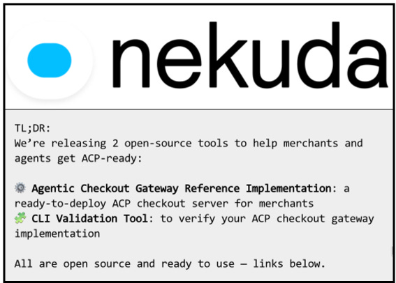They cover it in the TL;DR, but I’ll re-state it. If you are a retailer or brand with a developer/engineering team that is researching/implementing/planning around ACP, check out Nekuda’s two tools they just open-sourced. One of them is a ACP reference implementation. The other one is a validation tool.