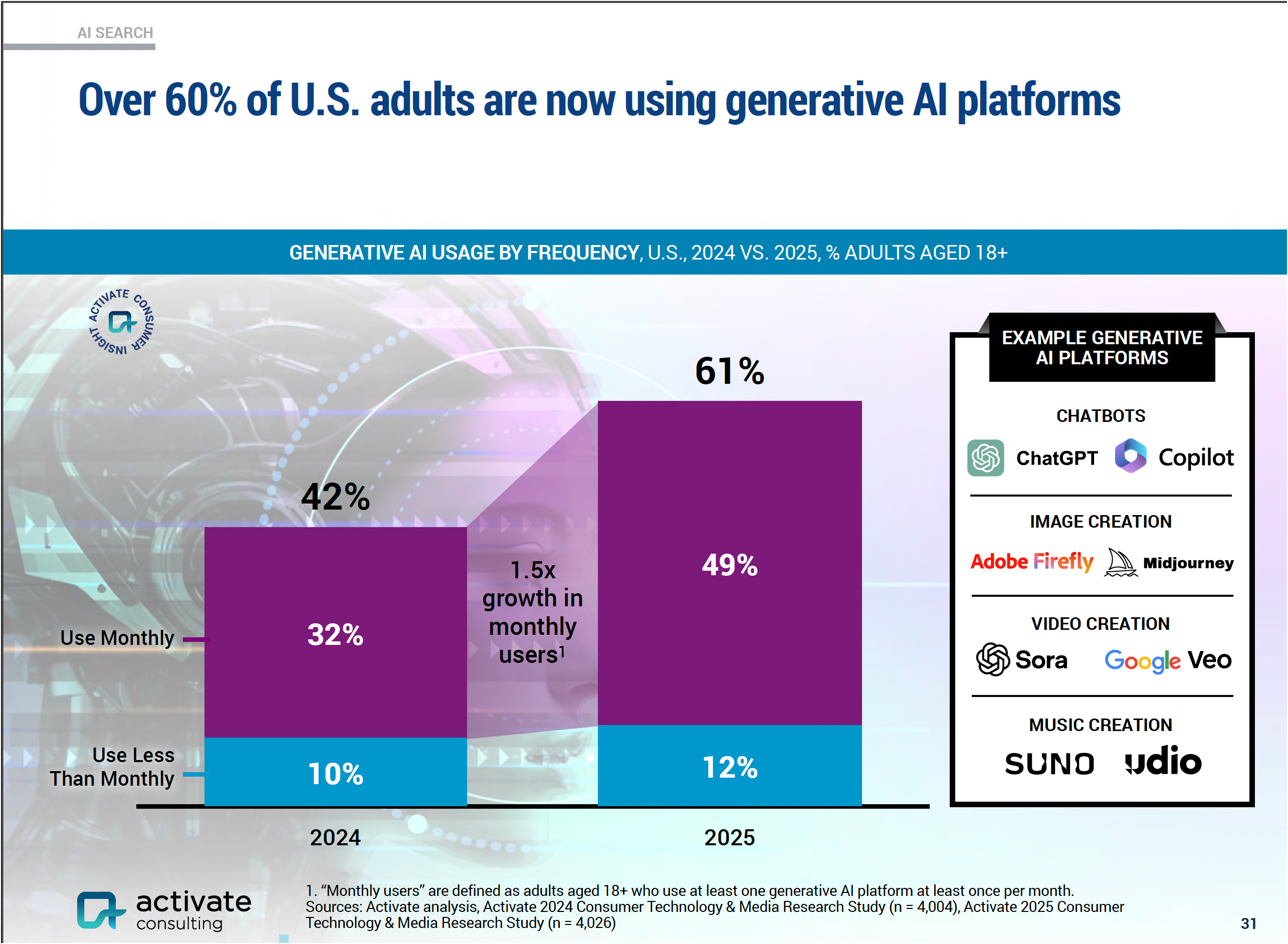 Slide 31: Over 60% of US adults are now using GenAI Platforms
