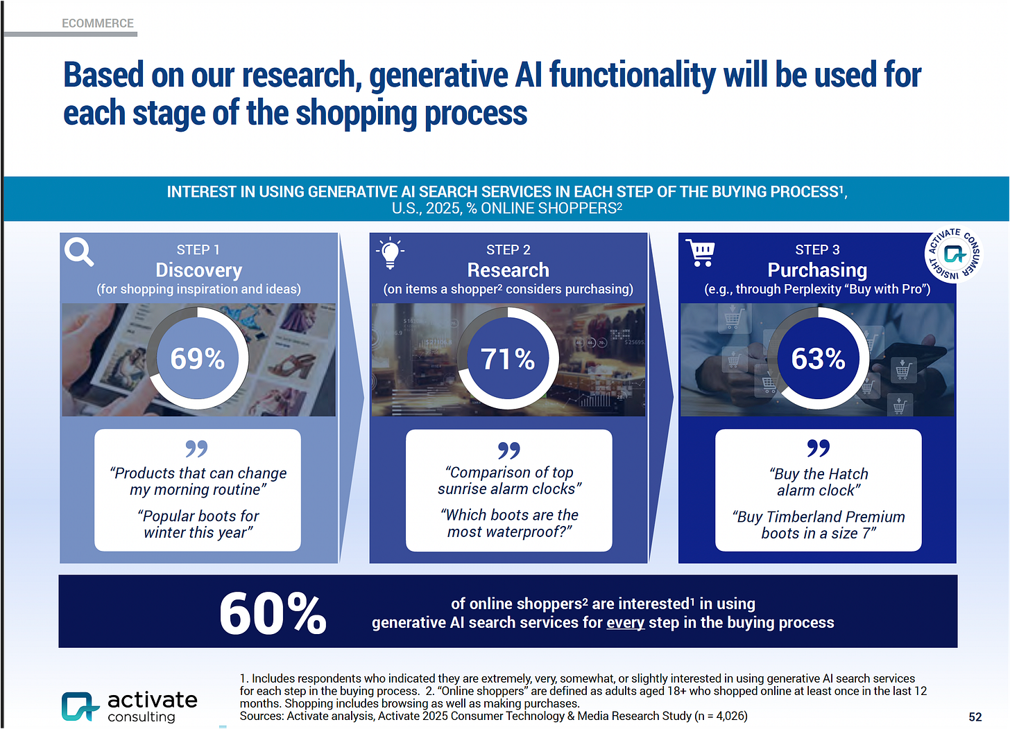 Agentic Shopping naysayers love to say that people will really only use agentic for research or another set of them say the opposite- only to buy simple things. The Results of the Activate Survey: