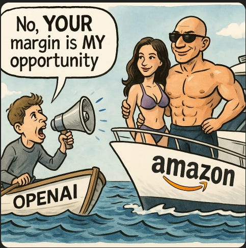 I āheardā these comments different than many - I think Altman is going to out-low-margin Amazon who invented the famous Bezos-ism: Your margin is my opportunity. Amazonās fattest two high margin business are marketplace and ads. ChatGPT has an opportunity to take a chunk out of both.