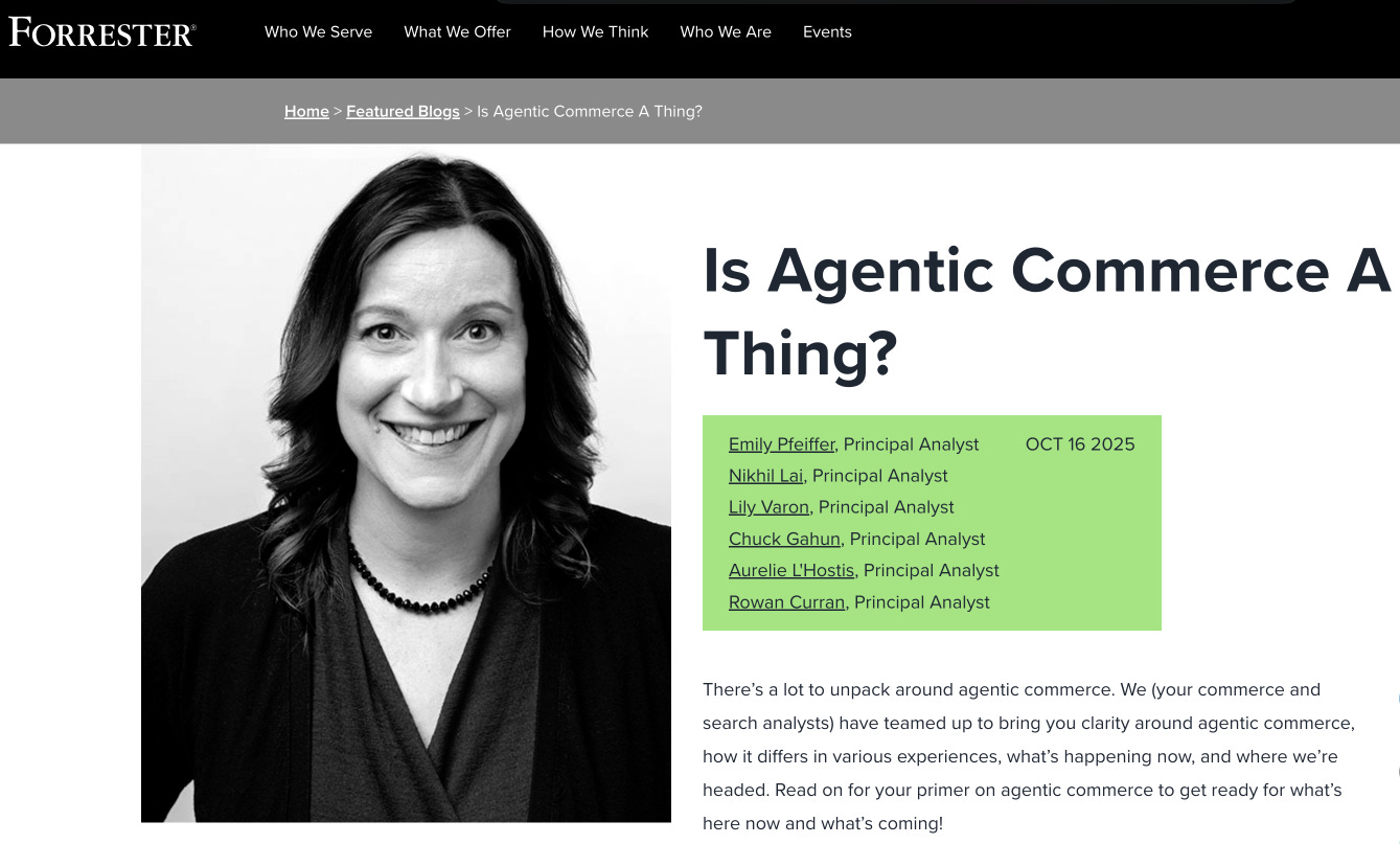 This piece questions, ‘Is Agentic Commerce a thing?’ You all know where I fall on this one, where will Forrester land?
