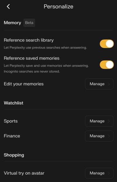 There’s an X account, called testingcatalog that scans all the LLM Answer Engine for interesting tests and feature sneaking out. Recently they caught this in the personalize screen: