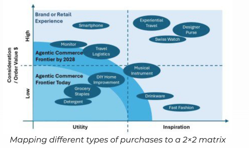 They argue that the only quadrant applicable to Agentic Commerce is the bottom left - low consideration / utility products. Basically Agentic Commerce is only good for ordering toilet paper 🧻 and Walmart and Amazon already have that locked up.