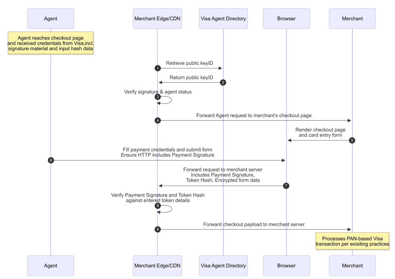 Visa announced the Trusted Agent Protocol (TAP) - details are here. TAP enhances their Visa Intelligent Commerce suite and adds transparency, safety/trust and merchant visibility. In layman’s terms, what this adds is a layer of security using security and intent data that expire and can not be forwarded or relayed increasing the security and transparency of Visa’s agentic payment system. I found this flow/sequence diagram helpful→