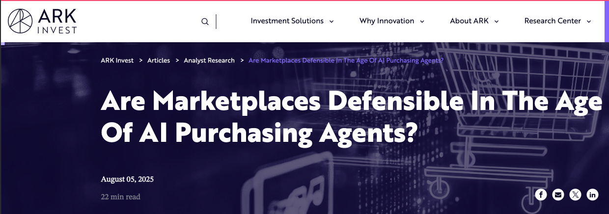 Ark Invest with the Counter opinion: Agentic Commerce will eat (most) marketplaces
