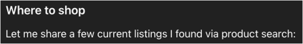 The underlying results are different because of the change of availability, but what you first notice is in ChatGPT-5 what we call ‘product cards’ are dramatically larger. This isn’t always consistent and in fact, our hypothesis is that in the first 48hrs they were tweaking the Shopping experience a good bit - we run many of the same prompts many times a day and during the 4o-era there was consistency in appearance and right now it’s fluctuating a good bit still.