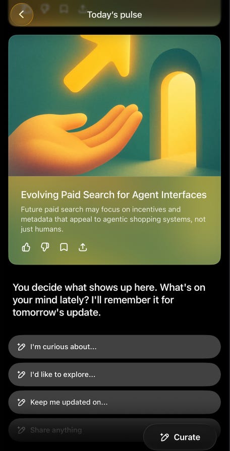 Pulse is very GPU intensive and, thus, in this early experience phase is only available to limited users on the mobile app that have ChatGPT Pro. Turns out, guess who woke up this morning and had access - yep your’s truly! Let’s go through it together…