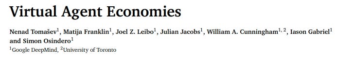 If you made it this far, your surpsie bonus is a little light reading. This week I discovered, (but it was published last week), a DeepMind paper called “Virtual Agent Economies”. I love agents, especially when they are virtual and I love Economics and Economies, so sign me up!