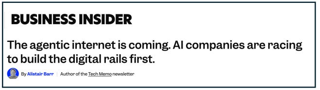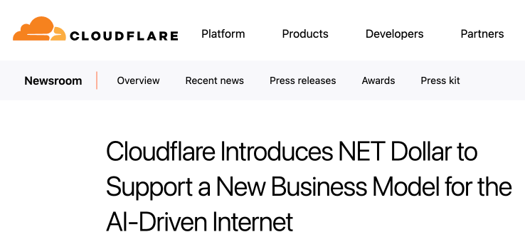 Cloudflare, ironically the firm that is out there, by default blocking all the Agentic agents, now has come out with a stablecoin called NET Dollar, that is a new currency for agentic transactions. Hmmm, I wonder if an agent uses NET Dollar, will it magically get through the filters?