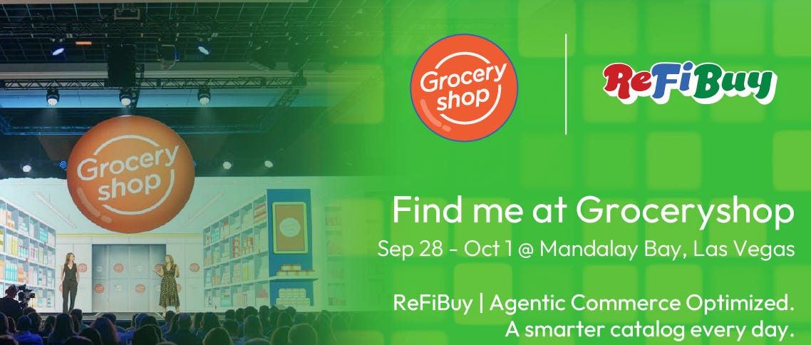 Before we jump into all the action from this week, next week Derek and I will be at Groceryshop in Las Vegas - let me know if you are there and want to talk Agentic Commerce! We’re on the main stage early Monday fighting it out in the Shark Reef with 11 other startups, I’ll report back next week how we did.🤞