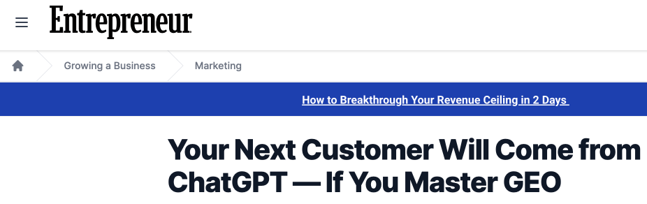 Entrepreneur magazine has a piece targeted towards SMBs and service businesses. It explains the overall traffic trends away from organic search and to how GenAI can counter the effect