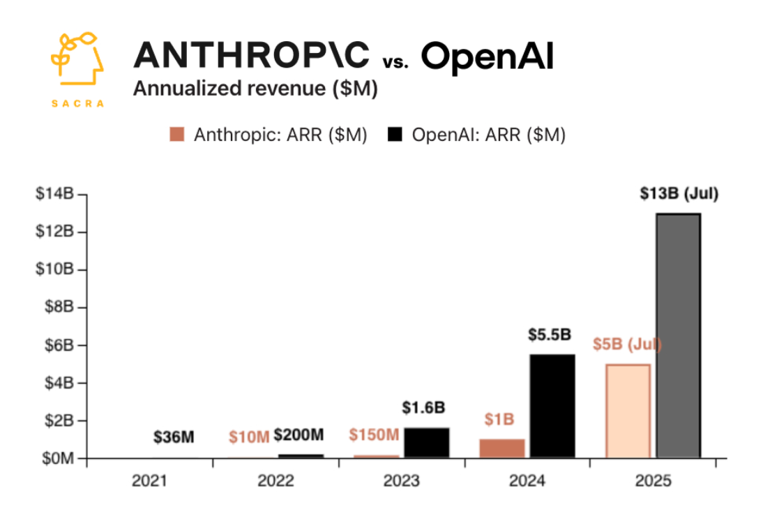 First, at a high level this is a good illustration of how fast revenue-wise the two leading frontier LLM providers OpenAI and Anthropic: