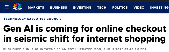 This is a bit ‘inside baseball’, but this week a slew of traditional pre-GenAI legacy SaaS e-commerce vendors realized that ‘Agentic Commerce’ is a thing and took dramatic action and…wrote some blog posts 😁. I don’t know why this week was ‘the week’, perhaps it took ChatGPT-5 to make them realize this was not a fad.