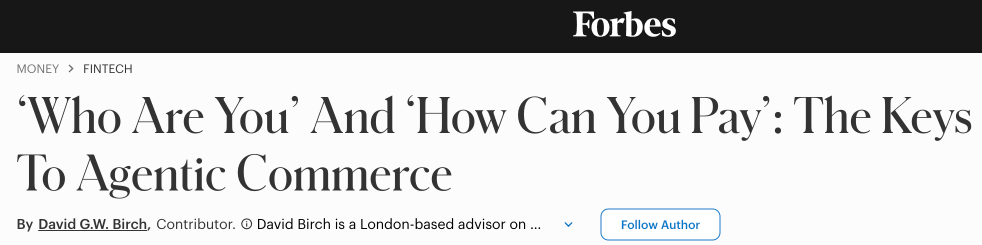 If Agentic Trust is a topic of interest to you, this Forbes article does a good job of outlining the issues around trust and payments that we’re going to see rise as Agentice commerce spreads