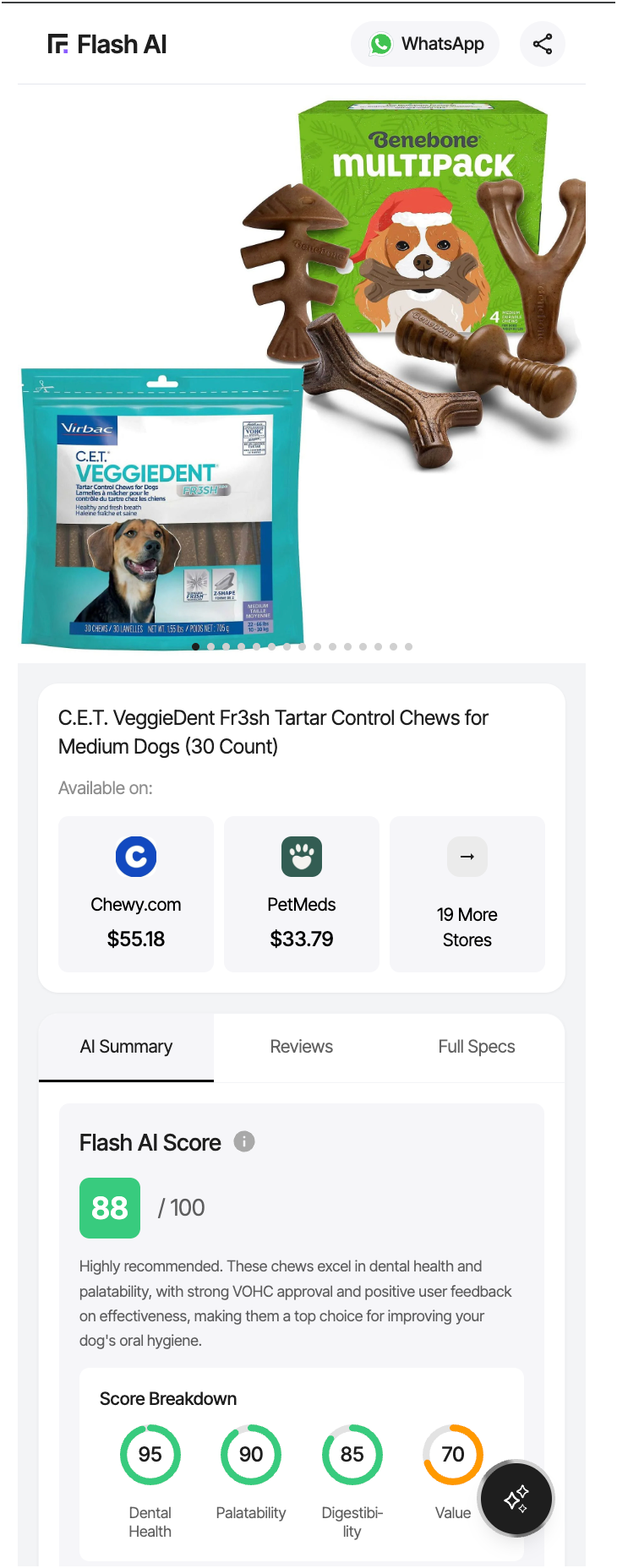 I haven’t had time to put Flash through all the paces, but the VeggieDents threw it for a loop - it found this was the low price: