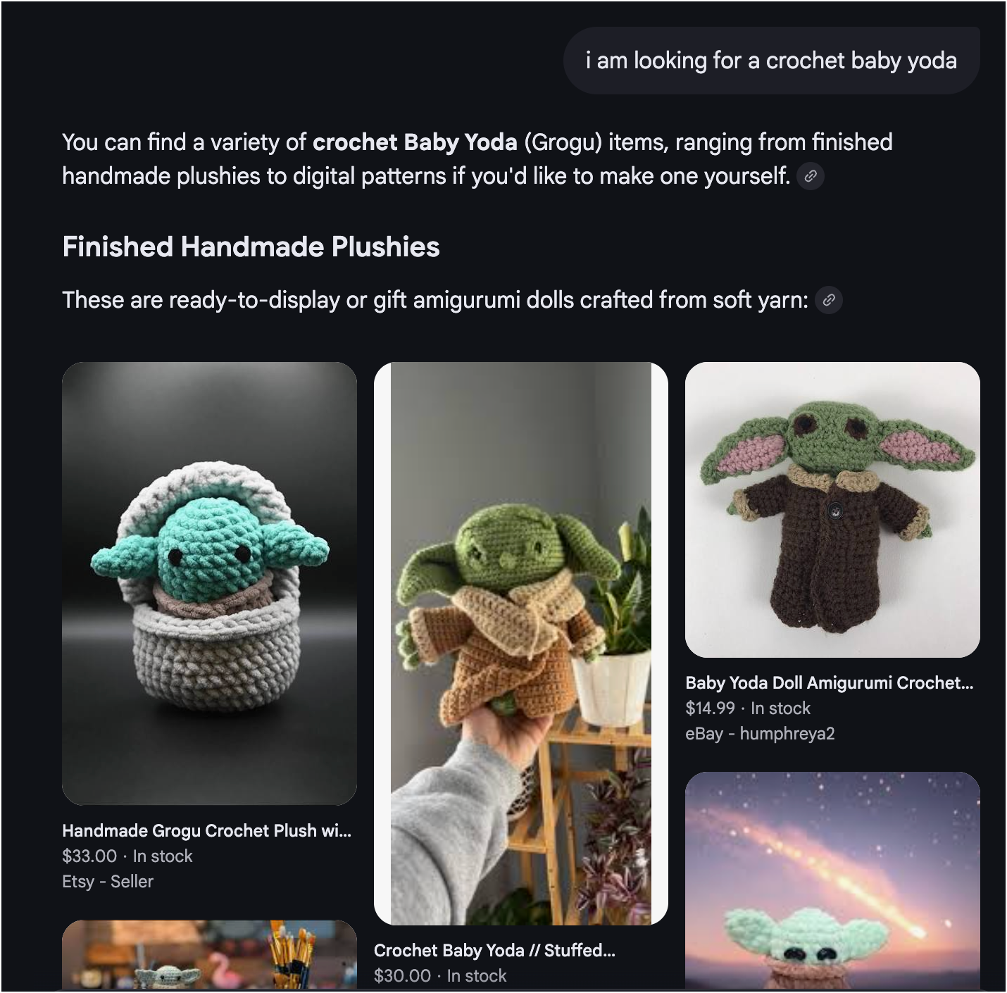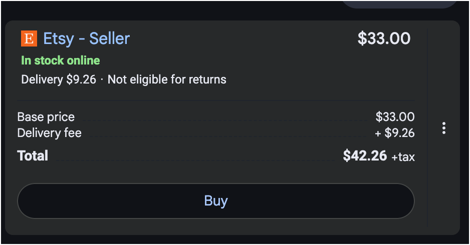 In Google AI MODE only, AIO and Gemini mode do not work yet, I look for a product (here I’ve purposely done a search I know will have an Etsy results)→