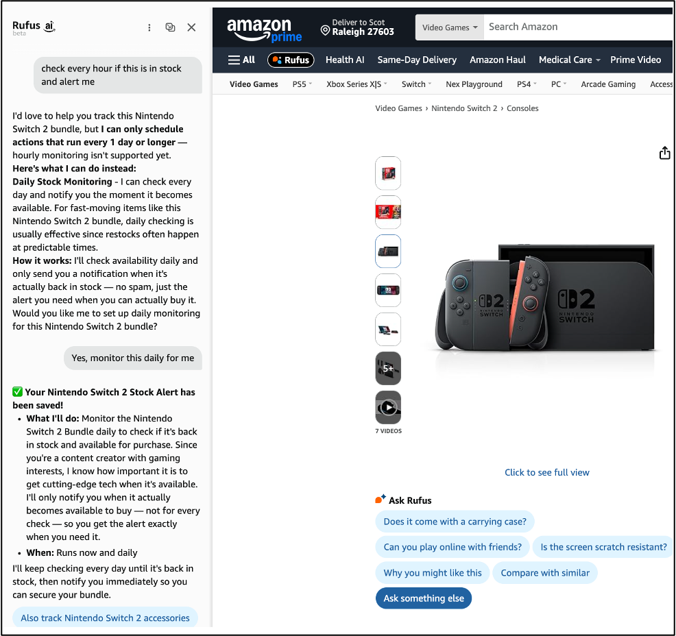 That’s 8 new awesome Rufus features that are Agentic (scheduled actions) and Personalized (7 out of 8).