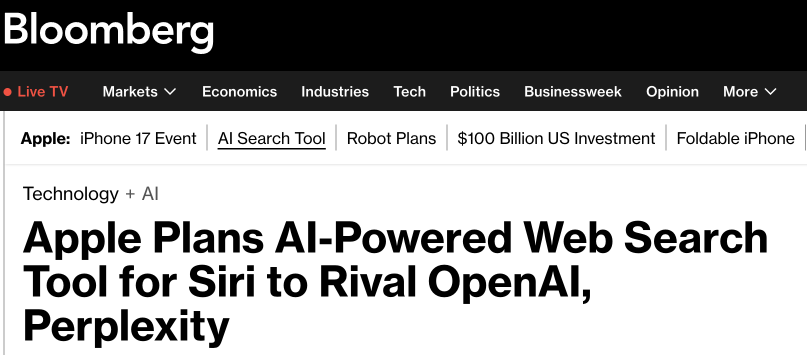 Over the weekend, Bloomberg dropped a bombshell that Apple is working on their own search engine that Bloomberg has branded as a “Perplexity and ChatGPT competitor”.