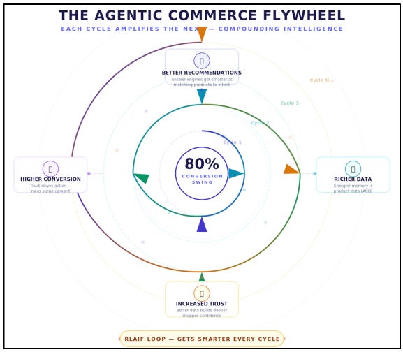 Only one thing can explain this 80% swing in conversion rate - an Agentic Commerce flywheel -