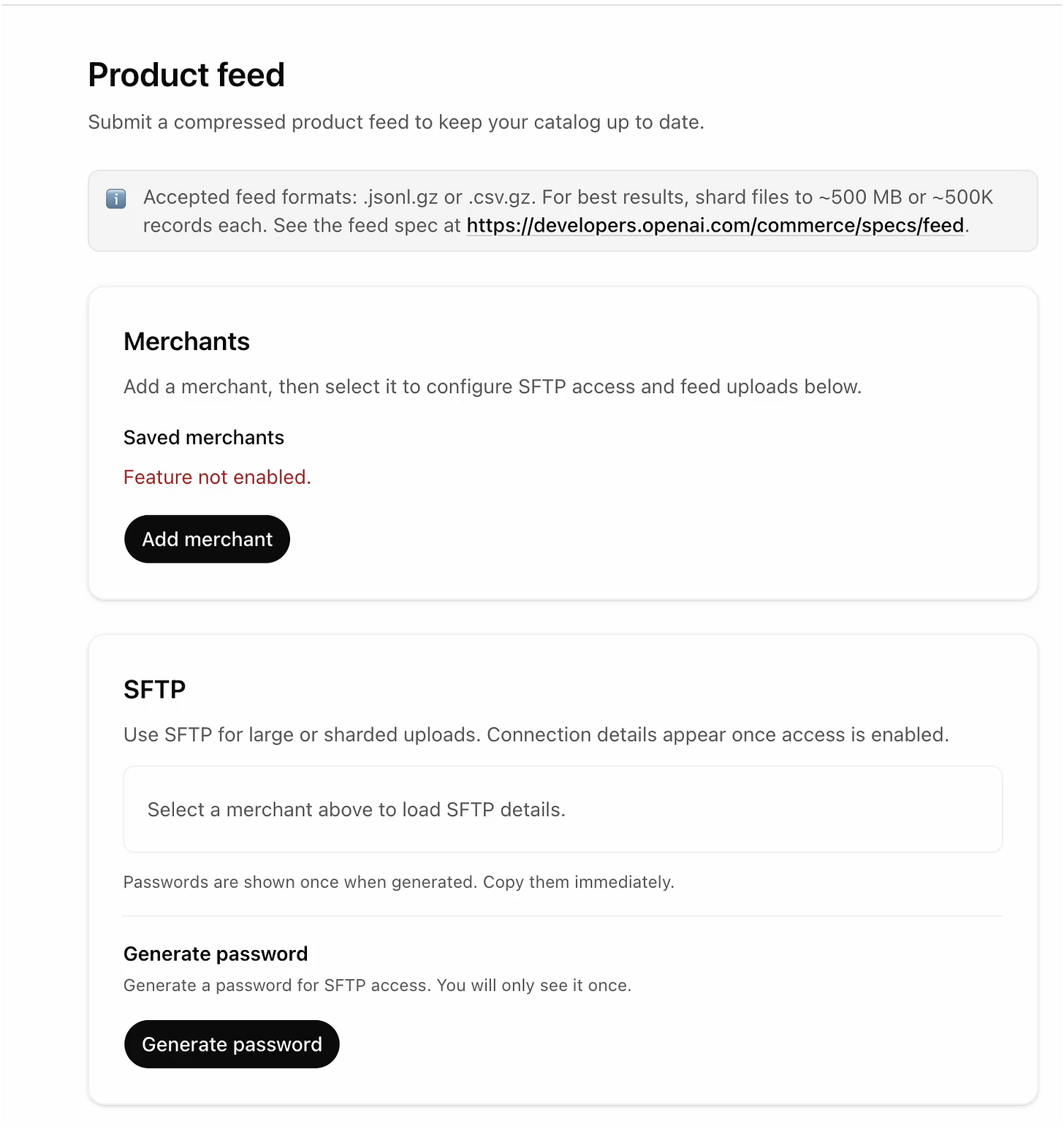 Our sleuthing friend Joe was able to get the front-end of the ChatGPT Merchant Center to display and we have our first look at what this is going to look like. It’s a long page so we split it into two screens shots: