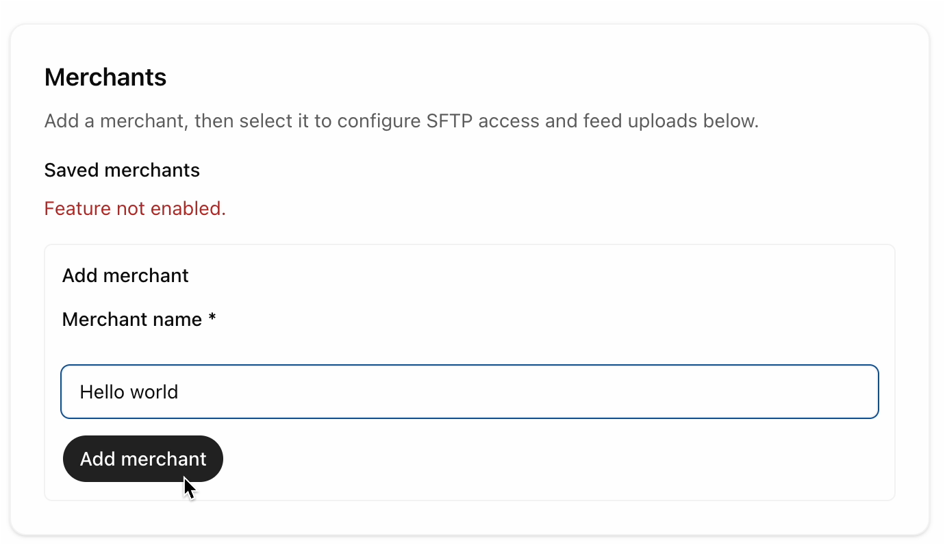 This is super-de-duper-ecommerce-nerdy and if you made it this far, the sub-sections here make sense to you, so I won’t spend space explaining them. What’s cool is even though the back-end feature flag is turned off you can exercise the UX around multiple merchants like this→