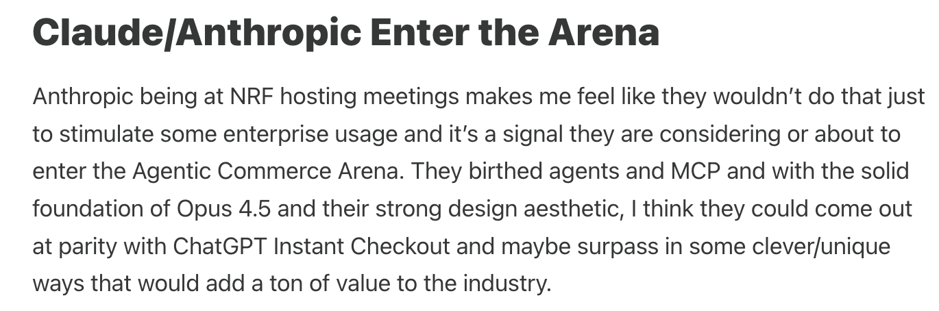 It’s going to see what kind of wild checkout experience the Claude-sters can dream up. I’m going to predict it will be a UI created on the fly vs. a more static approach the others have done. (Note to any Anthropic people reading this - I really really want a Thinking hat - help an agentic commerce brother out!)