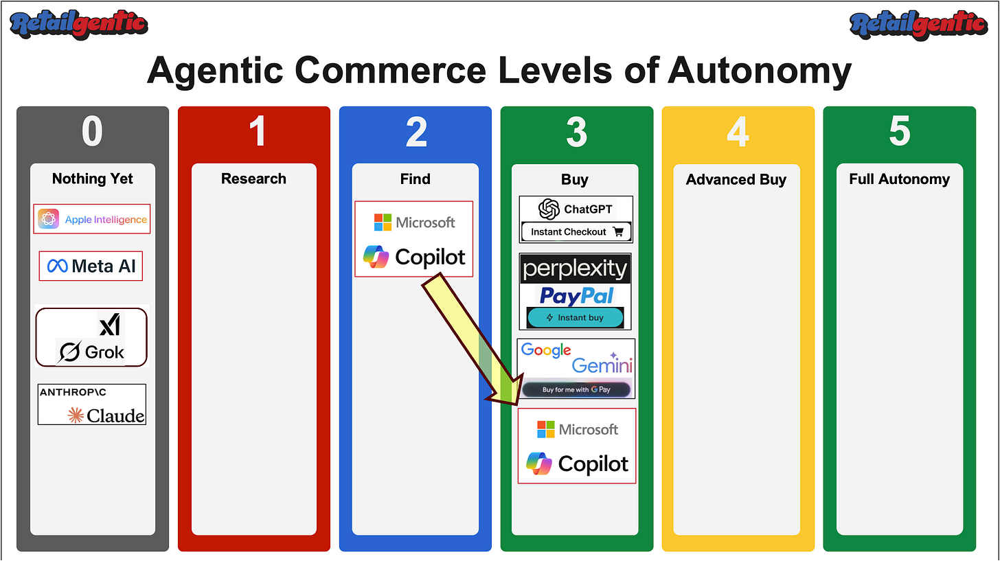 Literally ~15 minutes after hitting ‘send’ on our 11 Predictions for Agentic Commerce in 2026, we have our first predicted move comes true - Microsoft Copilot now has a checkout capability and has moved to Level-3 ‘Buy’ after spending all of 2025 camped out in the Level-2 bucket→