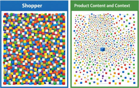 The LLMs have all of this information about what the shopper is looking for- way way way more than a keyword. If you thought ‘keyword’ was the highest intent signal, you haven’t seen anything yet. BUT if the LLM doesn’t have the content on the other side of the equation - the product side, how is the LLM going to know what product to recommend for this specific shopper’s needs?