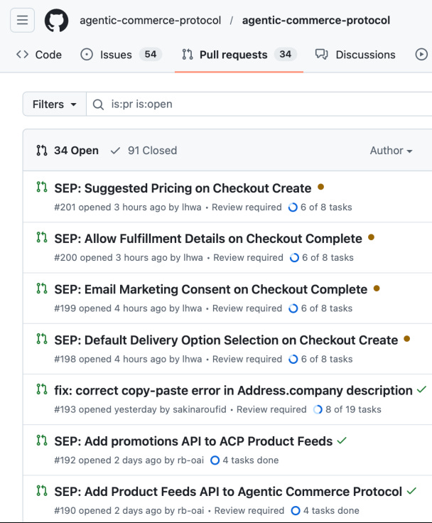 Last week, we highlighted speculation that Meta would pick ACP over UCP. This week, Joe our Agentic Commerce Chief Sleuther, found that on github, this user ‘ihwa’ works a facebook and has some fresh pull requests (indicating they have resources working on the protocol and now actively making code contributions).