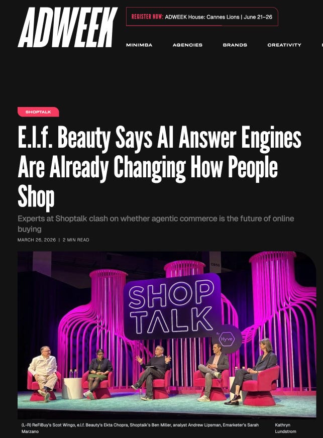 There was so much Agentic Commerce news dropping at Shoptalk, it was easy to miss all these interesting changes and non Shoptalk news items that rolled out while a big chunk of the industry was conventioning it up in Vegas. We have all the big updates summarized here so you can get caught up. We’re going to take them by company, but before we jump into that, here’s a great article summarizing our big debate from Adweek…