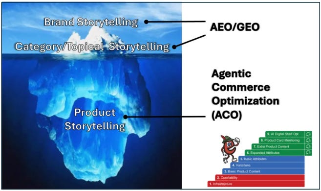 You can’t consistently measure these prompt results - AI visibility is a ghost. Citations are diminsihing and transactions are moving upstream as clicks go to zero? What can you do? (Hint: product-level ACO storytelling is the biggest action/measurable thing you can do).