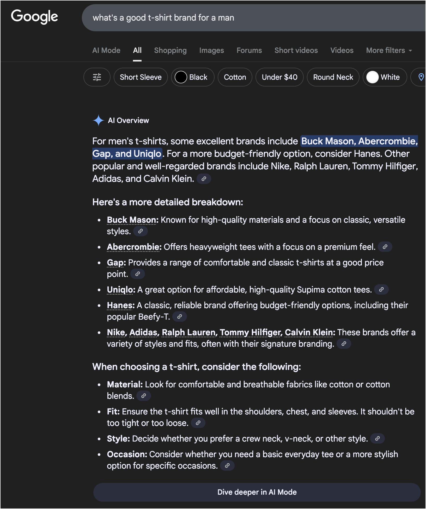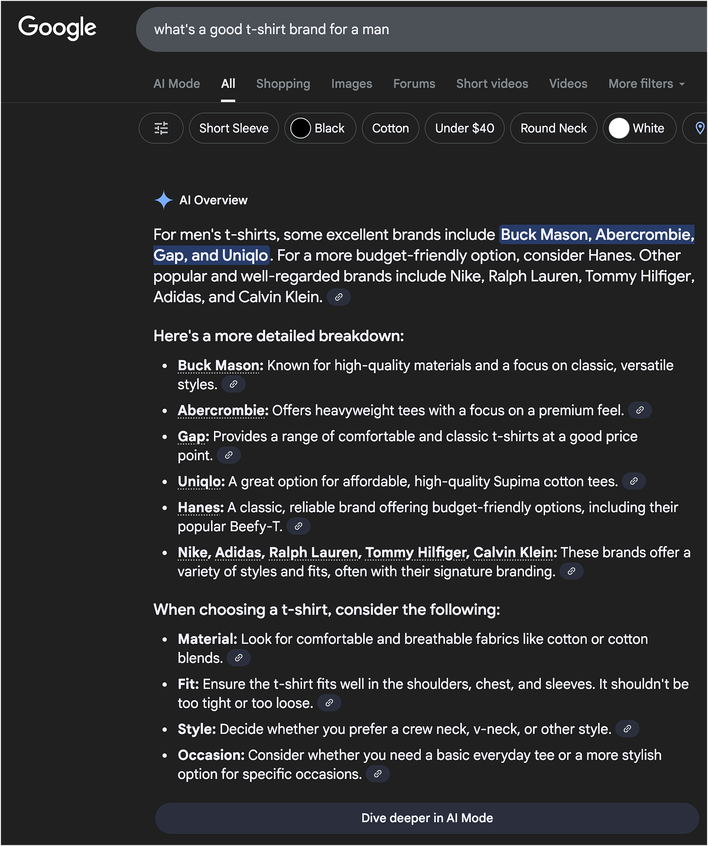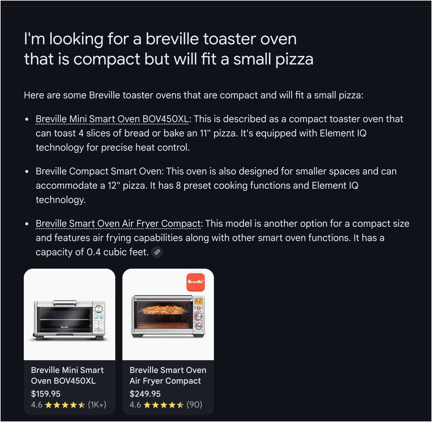 This week we noticed that may product prompts in AI Mode were starting to generate in-line product cards like this: