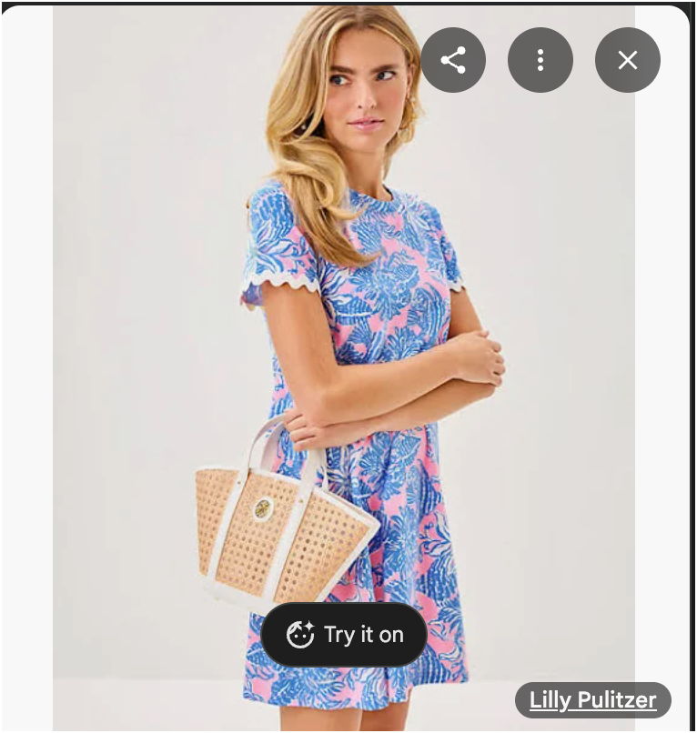 I list some Google Shopping here, because Google is sprinkling ‘back into’ Google Shopping many of the new features like the new GenAI ‘try it on’ feature which currently pops up for any apparel item.