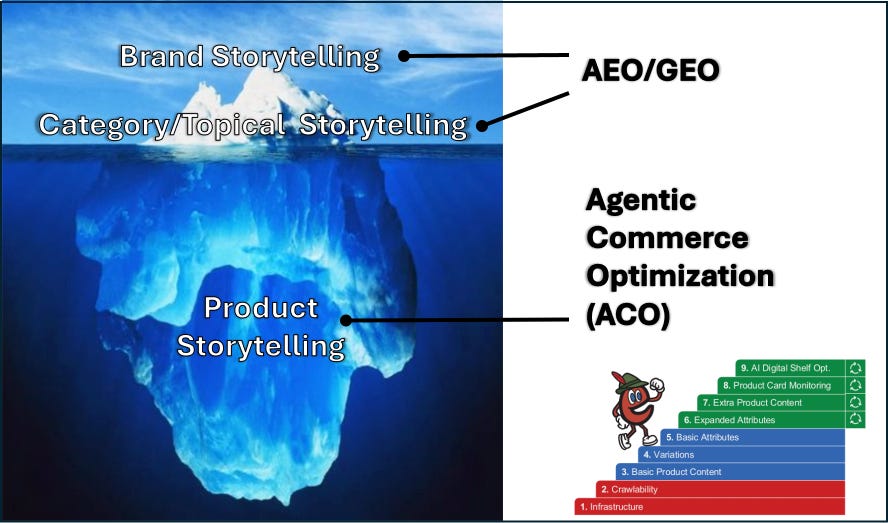 Where you can make the biggest impact in the world of Agentic Commerce is with Agentic Commerce Optimization (ACO). The challenge is we have a massive iceberg problem: