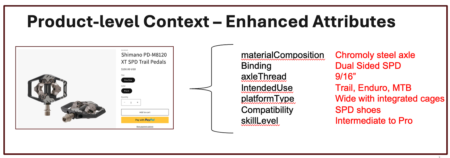 Success comes from ensuring that the LLM has a complete understanding of every one of your products - 2-10X of what was needed in the search era because we’re going from searches to answers and clicks to transactions. This starts with supplying a comprehensive list of attributes: