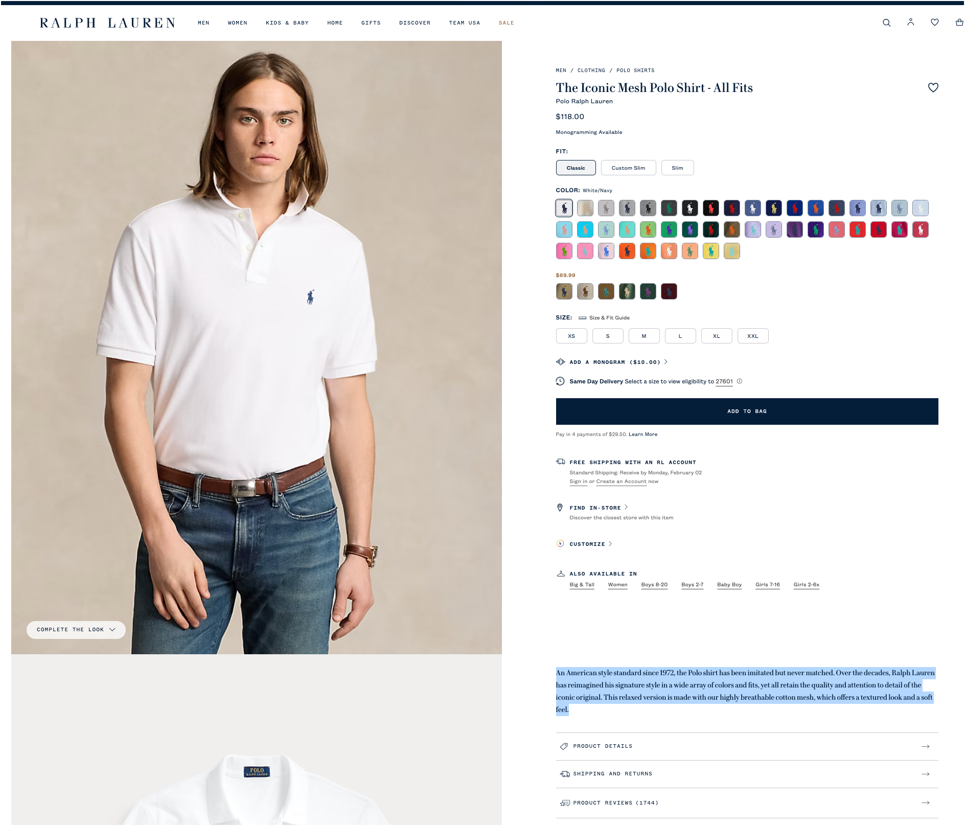 An American style standard since 1972, the Polo shirt has been imitated but never matched. Over the decades, Ralph Lauren has reimagined his signature style in a wide array of colors and fits, yet all retain the quality and attention to detail of the iconic original. This relaxed version is made with our highly breathable cotton mesh, which offers a textured look and a soft feel.