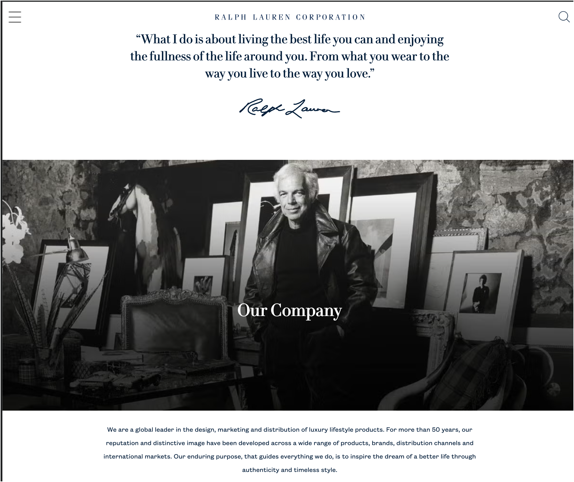 We are a global leader in the design, marketing and distribution of luxury lifestyle products. For more than 50 years, our reputation and distinctive image have been developed across a wide range of products, brands, distribution channels and international markets. Our enduring purpose, that guides everything we do, is to inspire the dream of a better life through authenticity and timeless style.
