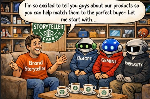 In my post last week, we talked about the fact that Google has had us locked in ‘Keyword Jail” for the last 20 years. Now Agentic Commerce has liberated us and we are entering the Golden Age of Storytelling.